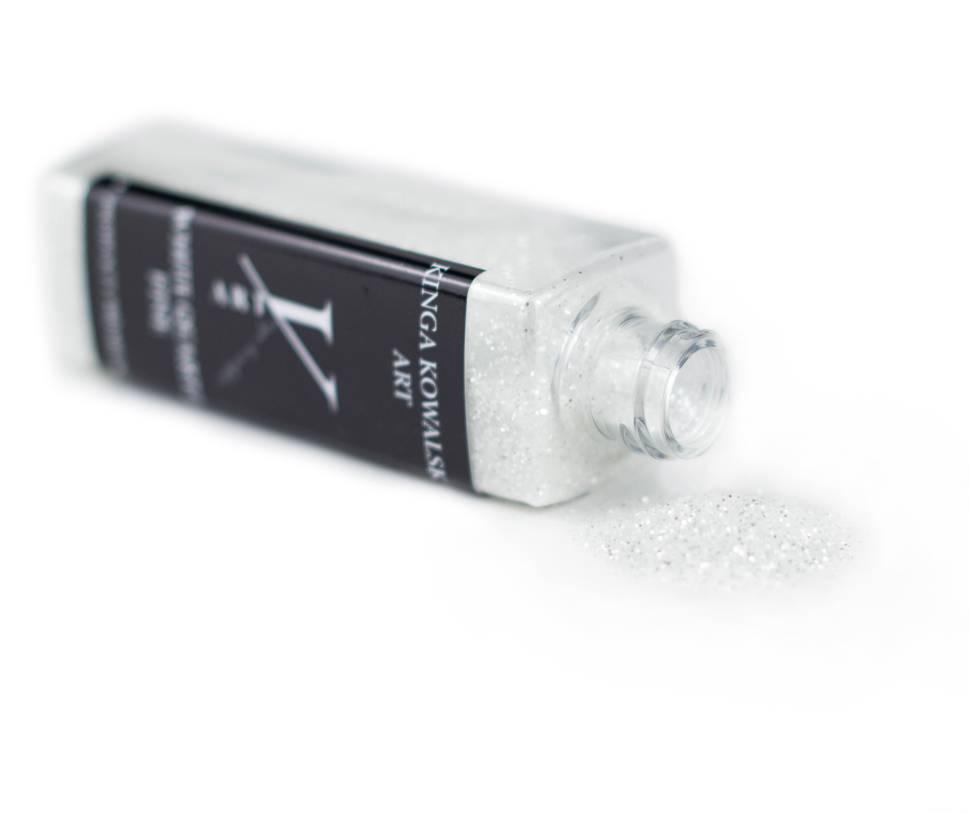 Drobny, bezbarwny brokat, który znajdzie zastosowanie w różnych technikach artystycznych, można mieszać go z żywicą.
